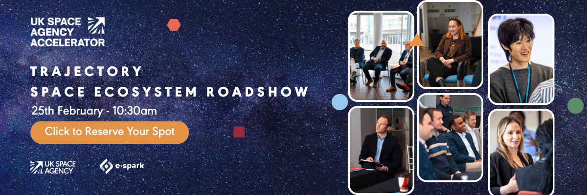 Trajectory is a roadshow of regional events designed to connect members of the UK Space Agency Accelerator community with customers, suppliers, investors and the wider ecosystem. It also serves as an innovative showcase of the vibrant and diverse space start-up ecosystem for regional businesses, investors and public sector stakeholders.